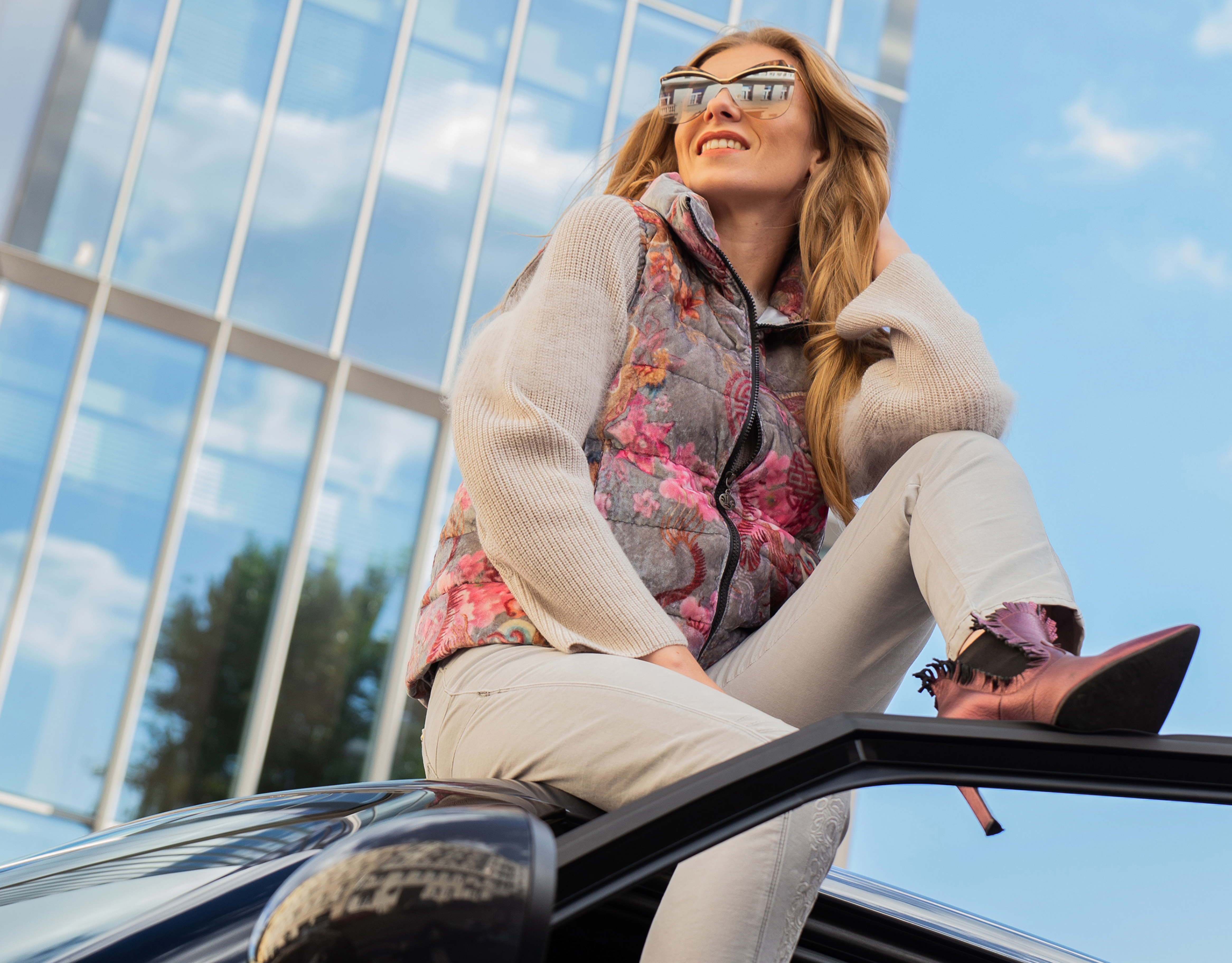 Luiza Dorosz / Heels on wheels in a photo session with the Mini Clubman Cooper S All4, set against the backdrop of Warsaw's scenery.