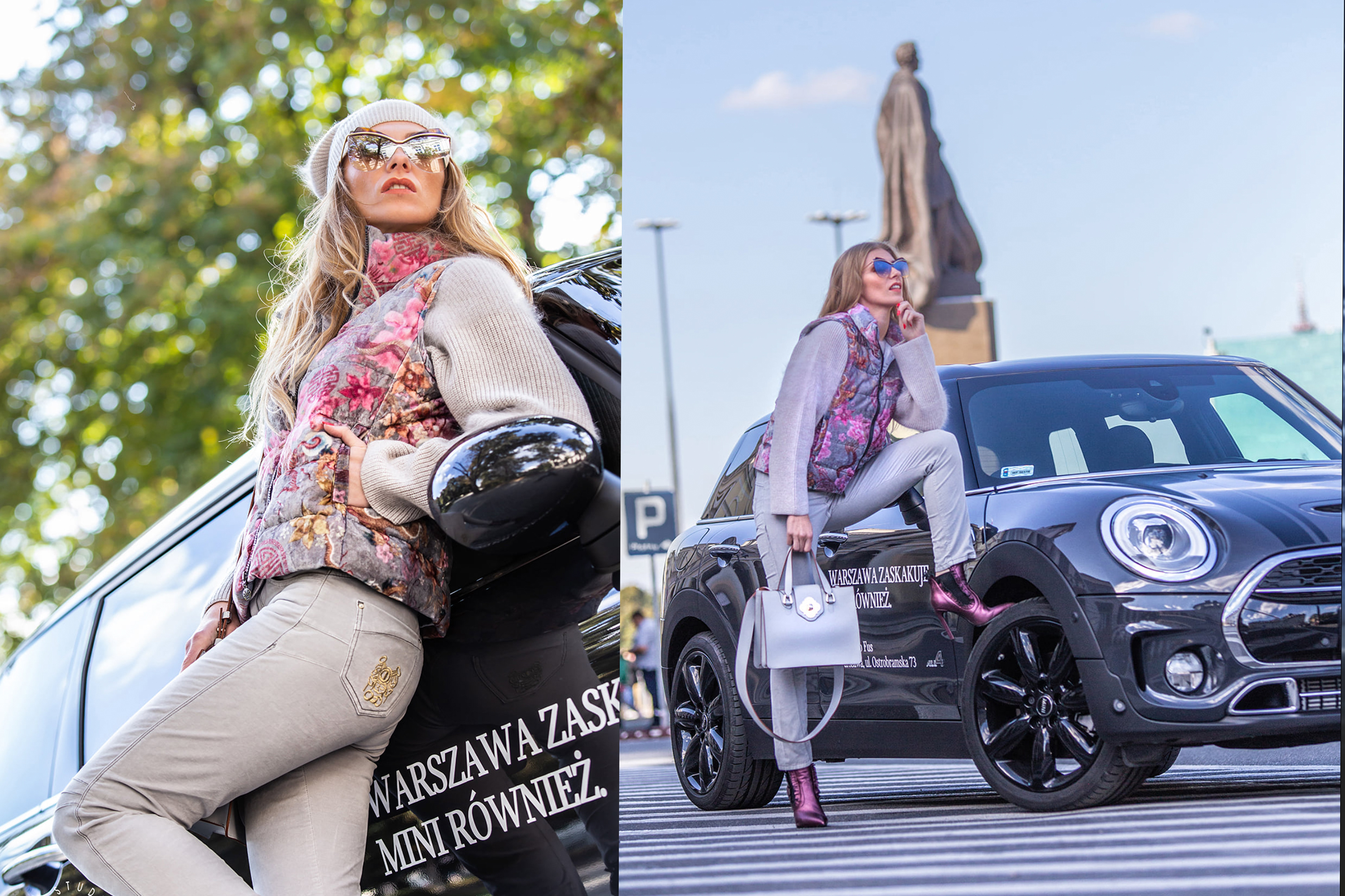 Luiza Dorosz / Heels on wheels in a photo session with the Mini Clubman Cooper S All4, set against the backdrop of Warsaw's scenery.